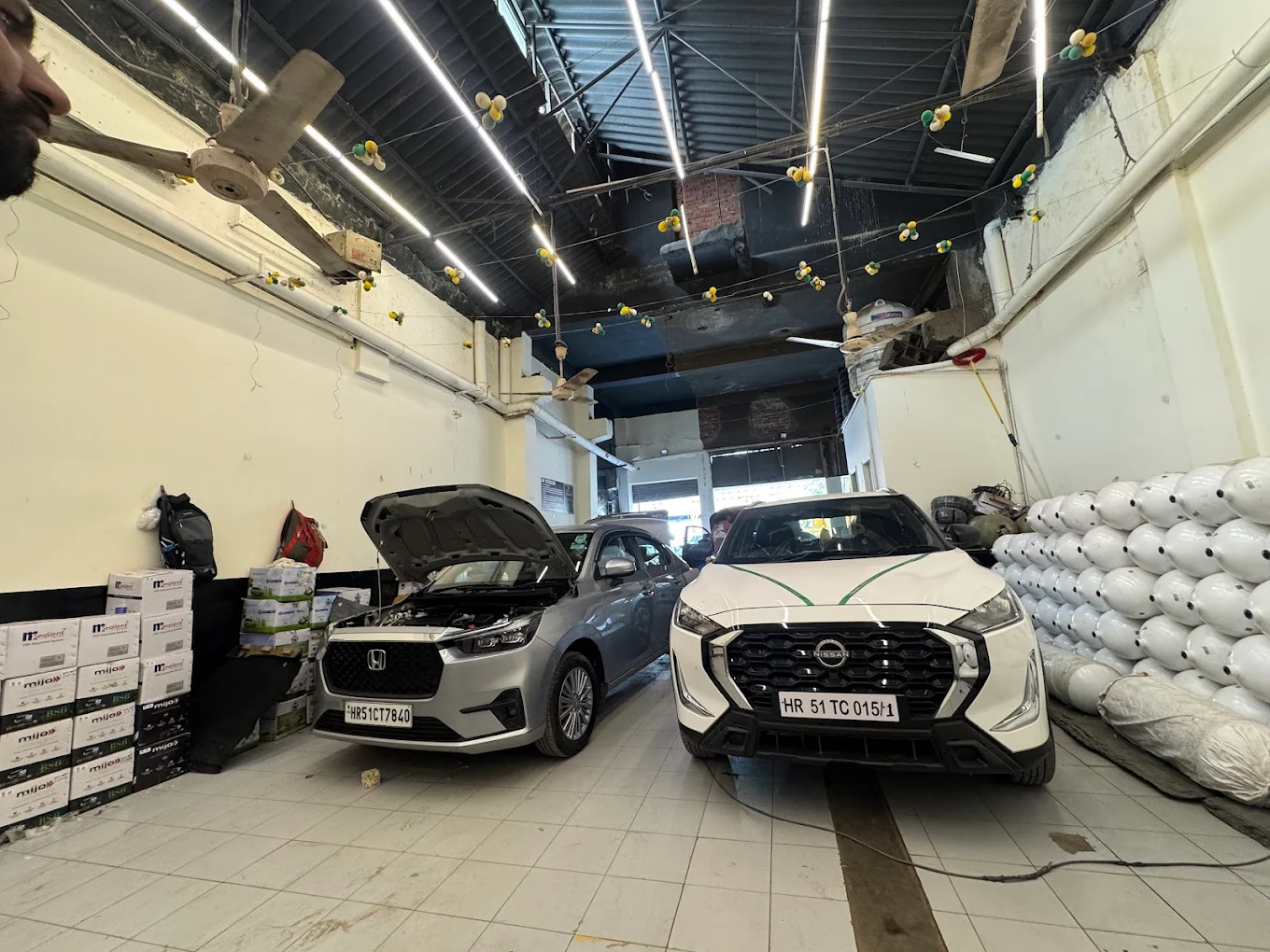 Discover behind-the-scenes moments of vehicle installations and attentive car service management at our trusted Delhi workshop.